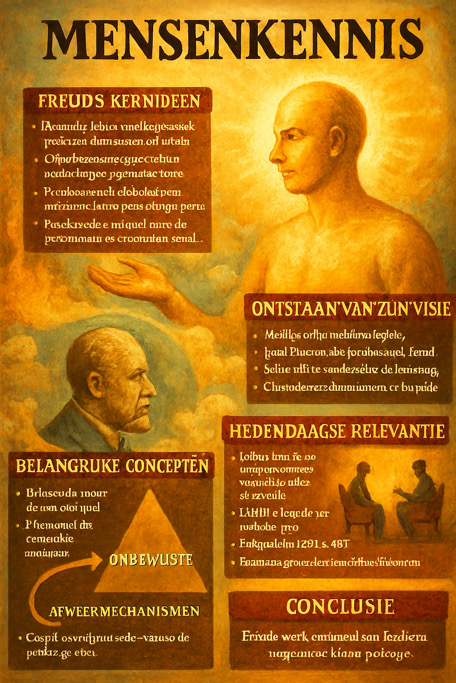 Freuds mensbeeld erkent de complexiteit en dynamiek van de menselijke psyche. Hij zag de persoonlijkheid als een samenspel van verschillende krachten en processen die voortdurend in beweging zijn.