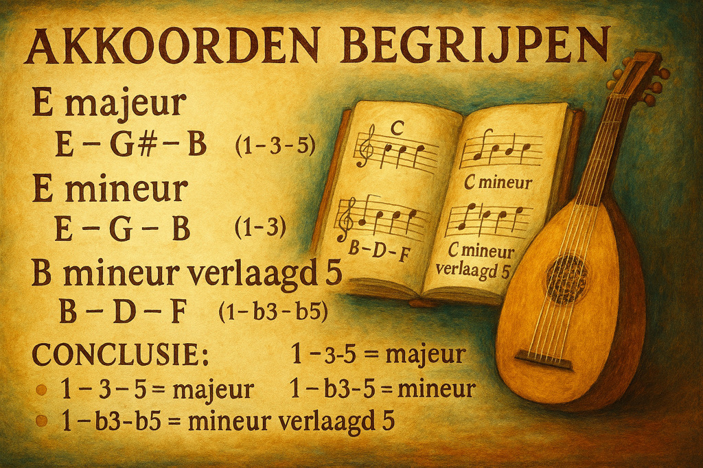 De E – G# – B is de E majeur. Het gaat uit van de 1 – 3 – 5, afspraak!