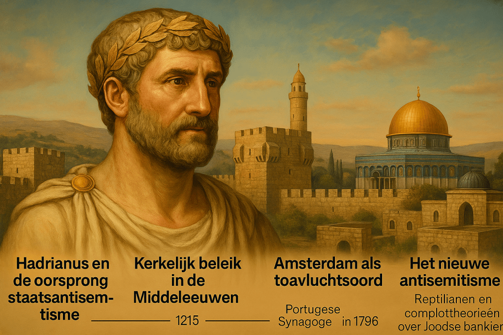 Hadrianus speelde een cruciale rol in de institutionalisering van religieuze controle. Na de Joodse opstanden in Judea verbood hij de besnijdenis en herbouwde Jeruzalem als een Romeinse stad: Aelia Capitolina. De Joodse religie werd gecriminaliseerd, en duizenden Joden werden verdreven of tot slaaf gemaakt. Dit markeerde een vroege vorm van staatsantisemitisme: niet alleen religieuze intolerantie, maar een systematische poging om een cultuur uit te wissen.
