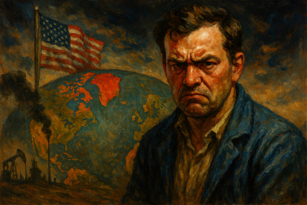 De Verenigde Staten, ooit de trotse reus die alles zelf kon, staan nu gevangen in ketens van afhankelijkheid. Dertig jaar geleden was er autonomie. Nu is er afhankelijkheid van China voor zeldzame aardmetalen, van Europa voor chipmachines, van Saoedi-Arabië voor olie. En de reus schreeuwt, slaat om zich heen, probeert terug te grijpen naar een verleden dat niet meer bestaat.