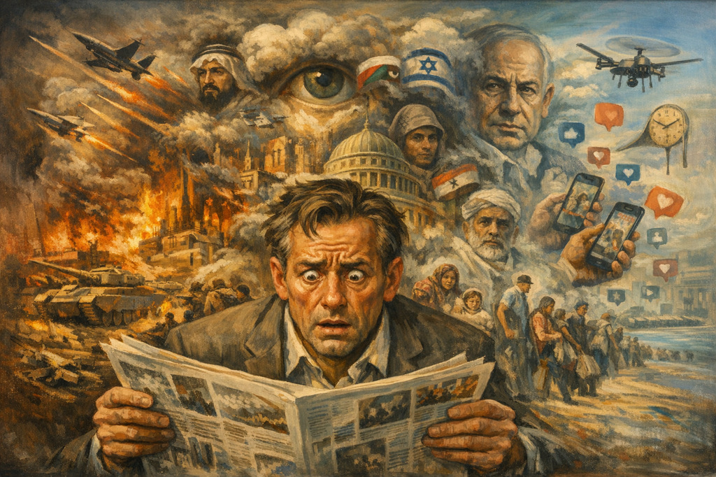Je leeft in een tijd waarin oorlog niet alleen op het slagveld wordt gevoerd, maar ook op je scherm. Je ziet hoe landen manoeuvreren, hoe leiders spreken of zwijgen, hoe burgers vluchten, hoe steden beschadigd raken, hoe geruchten groeien. Je ziet hoe de wereld verandert terwijl jij probeert te begrijpen wat er gebeurt.