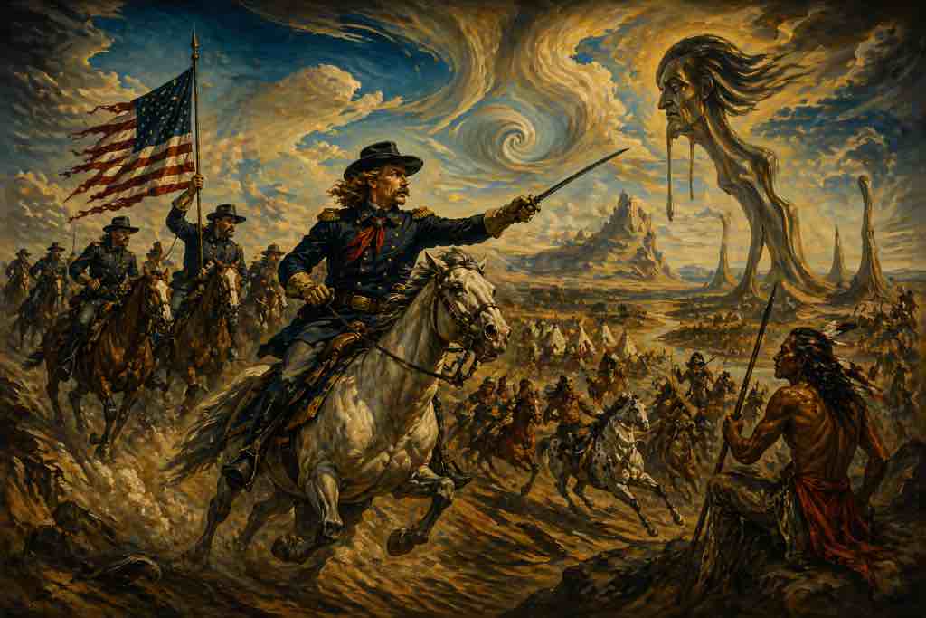 George Armstrong Custer was geen onbekende naam. Tijdens de Amerikaanse Burgeroorlog groeide hij razendsnel door en werd hij het gezicht van agressief militair leiderschap: snel handelen, druk zetten, niet wachten tot alles duidelijk is. Die stijl paste bij een land dat zichzelf uitbreidde, maar bracht ook een risico met zich mee: handelen op overtuiging in plaats van volledig inzicht. Na de oorlog werd hij ingezet in campagnes tegen inheemse volken, waarbij zijn naam steeds sterker verbonden raakte met expansie en het afdwingen van controle over land dat al bewoond was.